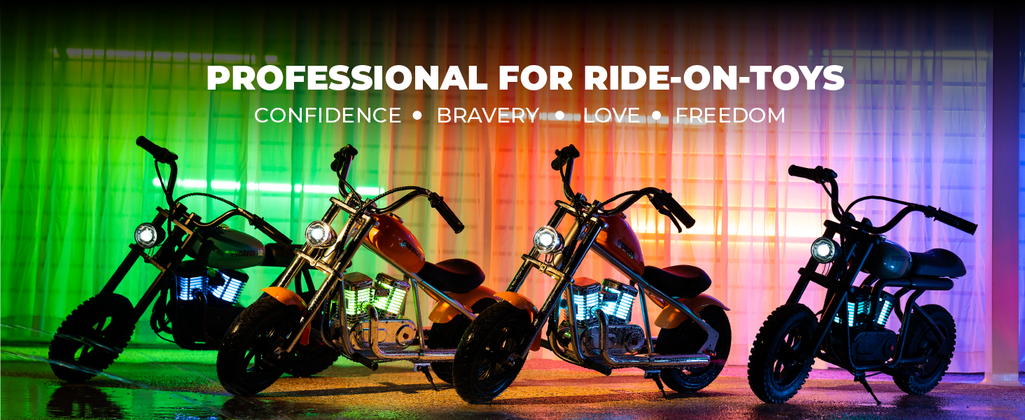 Welcome to Go Hyper World, where adventure knows no bounds! Our electric motorcycles aren't just toys; they're gateways to boundless excitement. Engineered for safety and designed for fun, every ride with Go Hyper World Kids is an exhilarating journey waiting to happen. Join us and discover the thrill of outdoor play like never before!